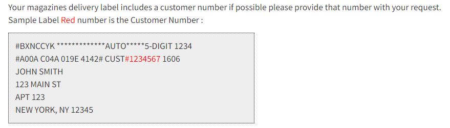 In order to change your address, you must locate your subscription record using either your account number (
